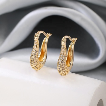 Hengdian ขายส่ง18K ชุบทอง zircon Pave huggie huggie ห่วงต่างหูสำหรับผู้หญิงวินเทจทันสมัยสำหรับออกเดททำงานทองแดง AAA zircon