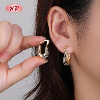 Hengdian ต่างหูห่วงฮักกี้ชุบทอง18K ทำจากทองเหลืองทรงเรขาคณิตลายหยดน้ำเซอร์คอนแบบเต็มรูปแบบสำหรับการเดินทางบรันช์ของผู้หญิง MOQ 12